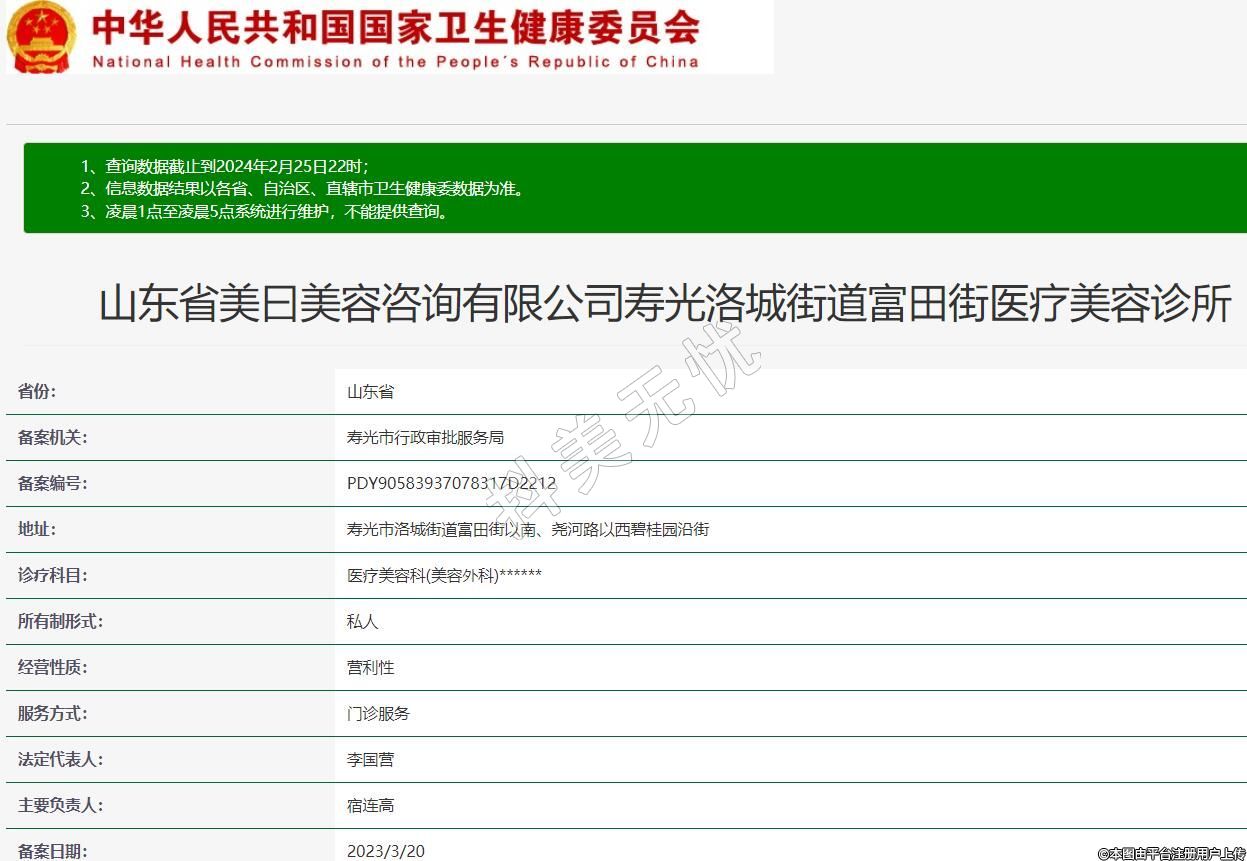 山東省美曰美容咨詢有限公司壽光洛城街道富田街醫(yī)療美容診所