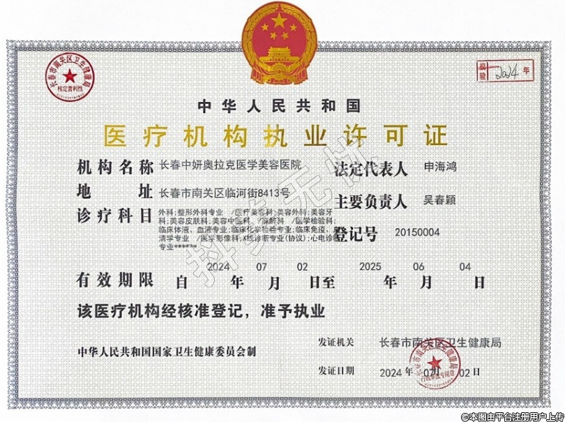 發(fā)證機關(guān):長春市南關(guān)區(qū)衛(wèi)生健康局