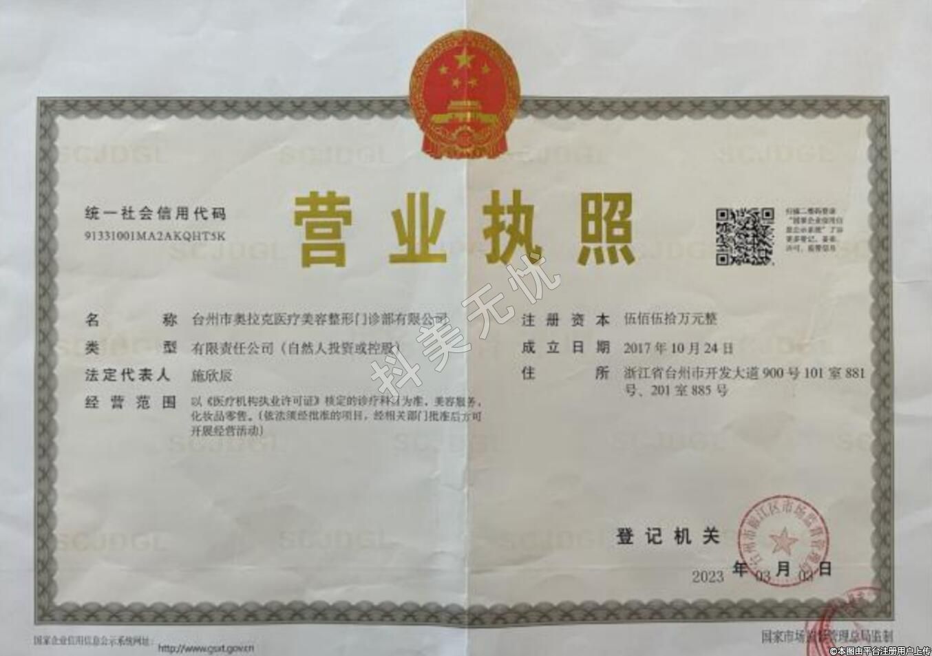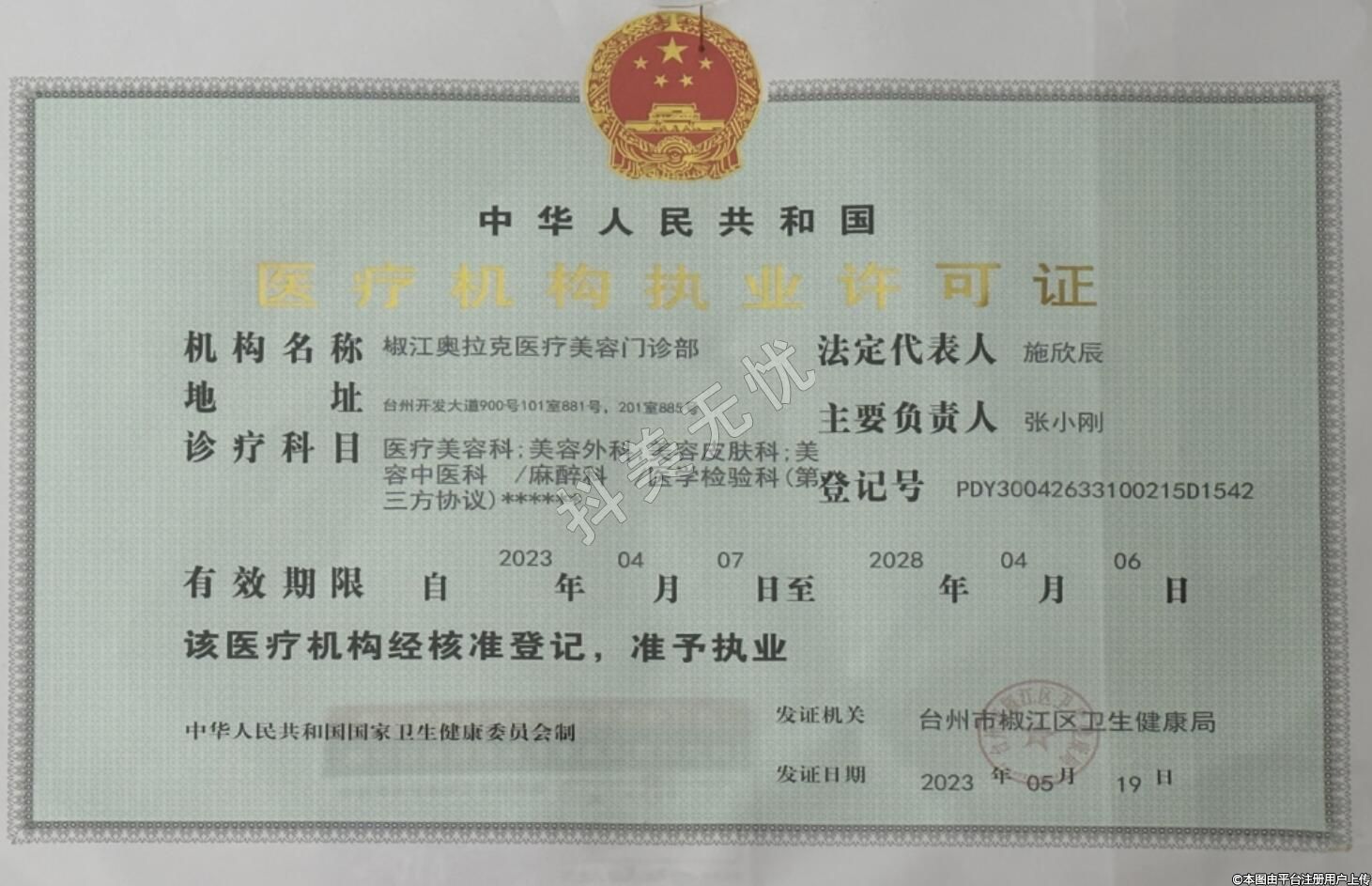 機構名稱:椒江奧拉克醫(yī)療美容門診部