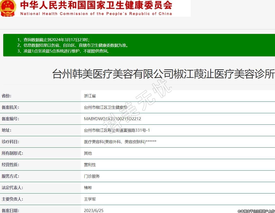臺州韓美醫(yī)療美容有限公司椒江葭沚醫(yī)療美容診所
