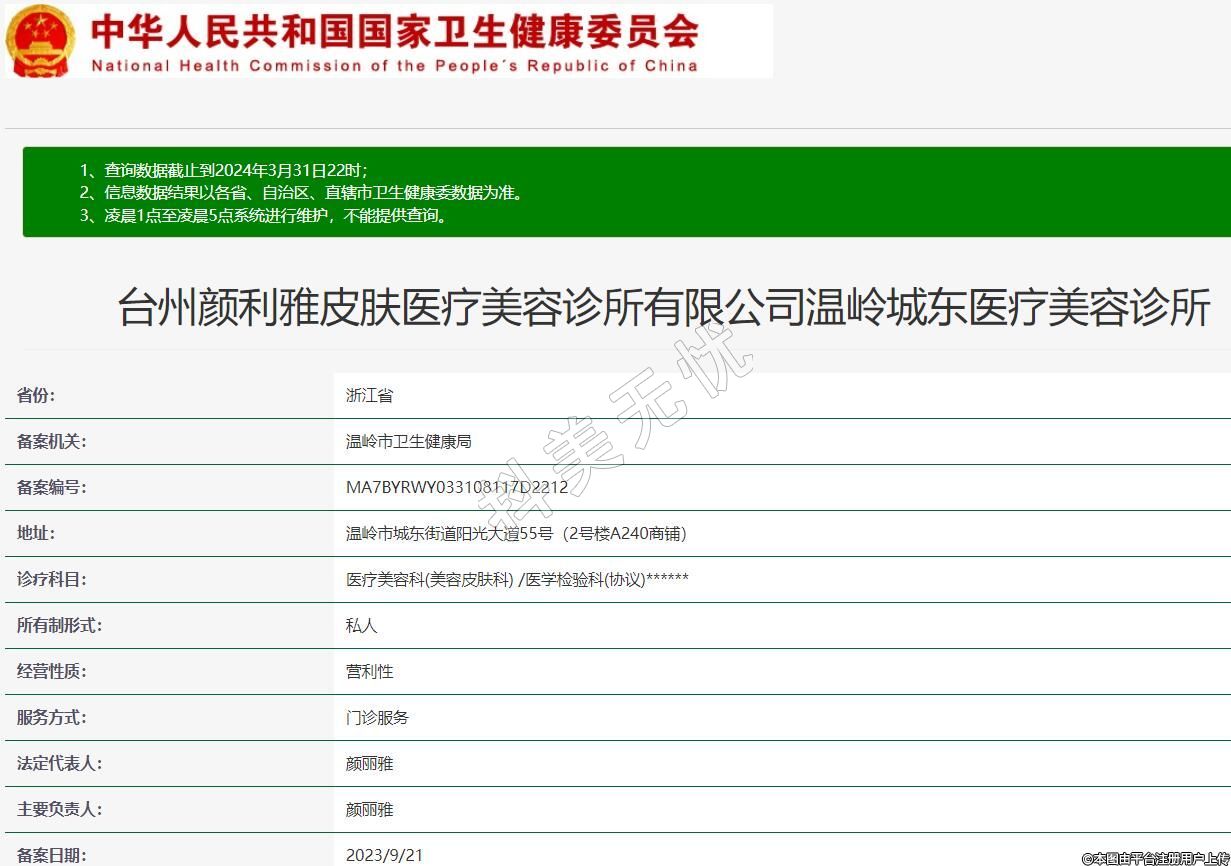 臺州顏利雅皮膚醫(yī)療美容診所有限公司溫嶺城東醫(yī)療美容診所