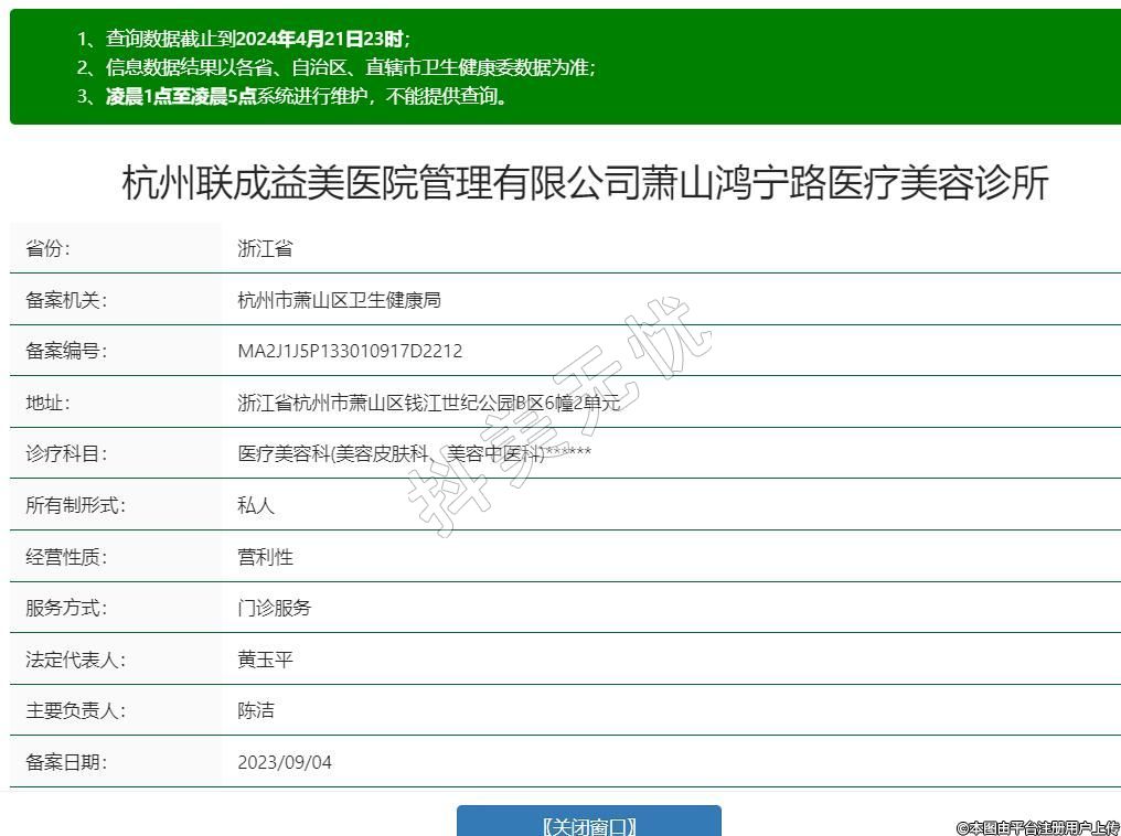 杭州聯(lián)成益美醫(yī)院管理有限公司蕭山鴻寧路醫(yī)療美容診所