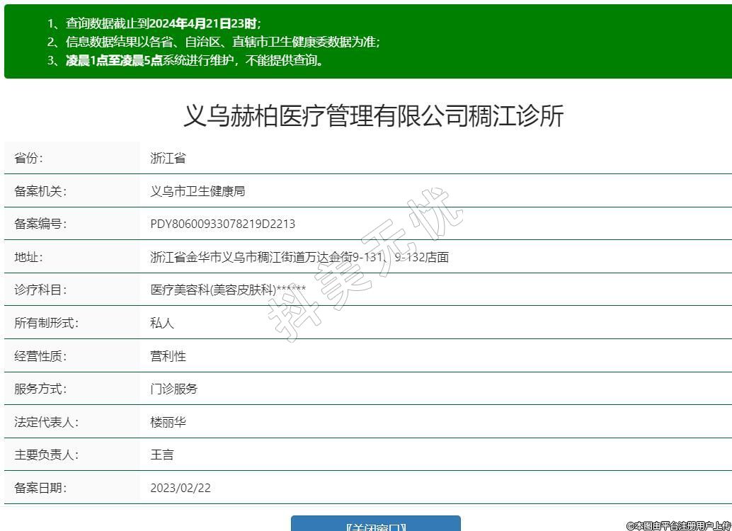 義烏赫柏醫(yī)療管理有限公司稠江診所,診療科目:醫(yī)療美容科(美容皮膚科)******