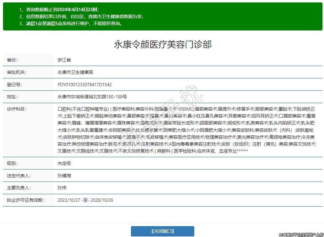 執(zhí)業(yè)許可證有效期:2023/10/27 -至- 2028/10/26