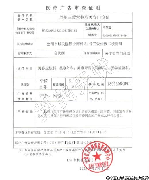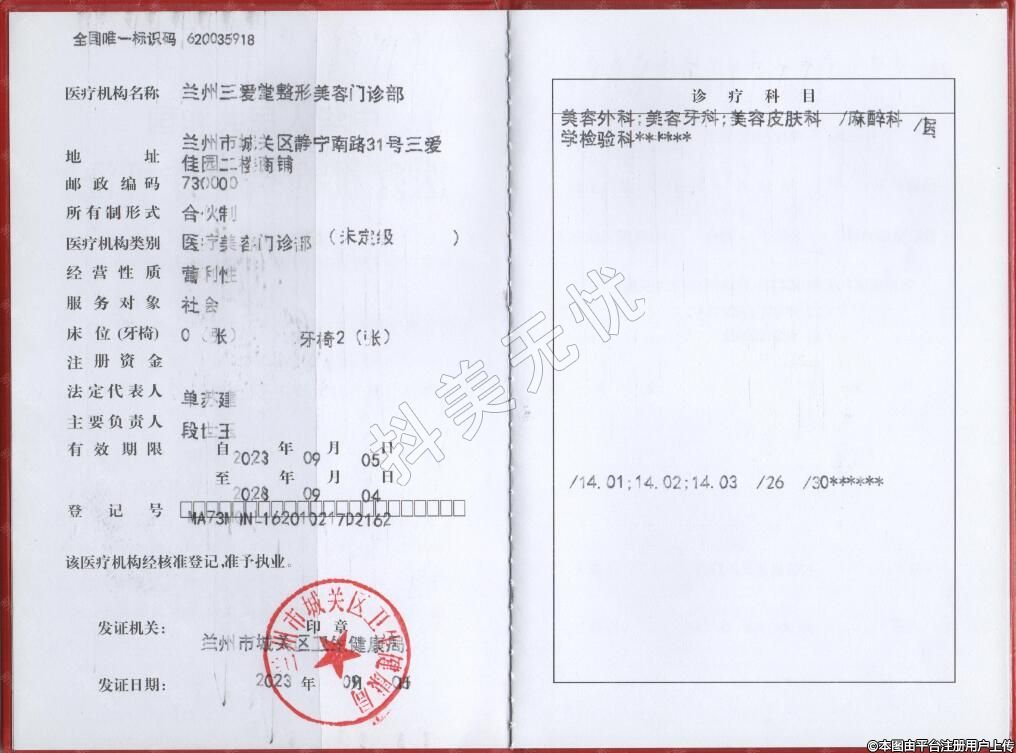 醫(yī)療機構名稱:蘭州三愛堂整形美容門診部