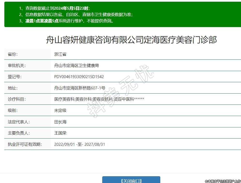舟山容妍健康咨詢有限公司定海醫(yī)療美容門診部