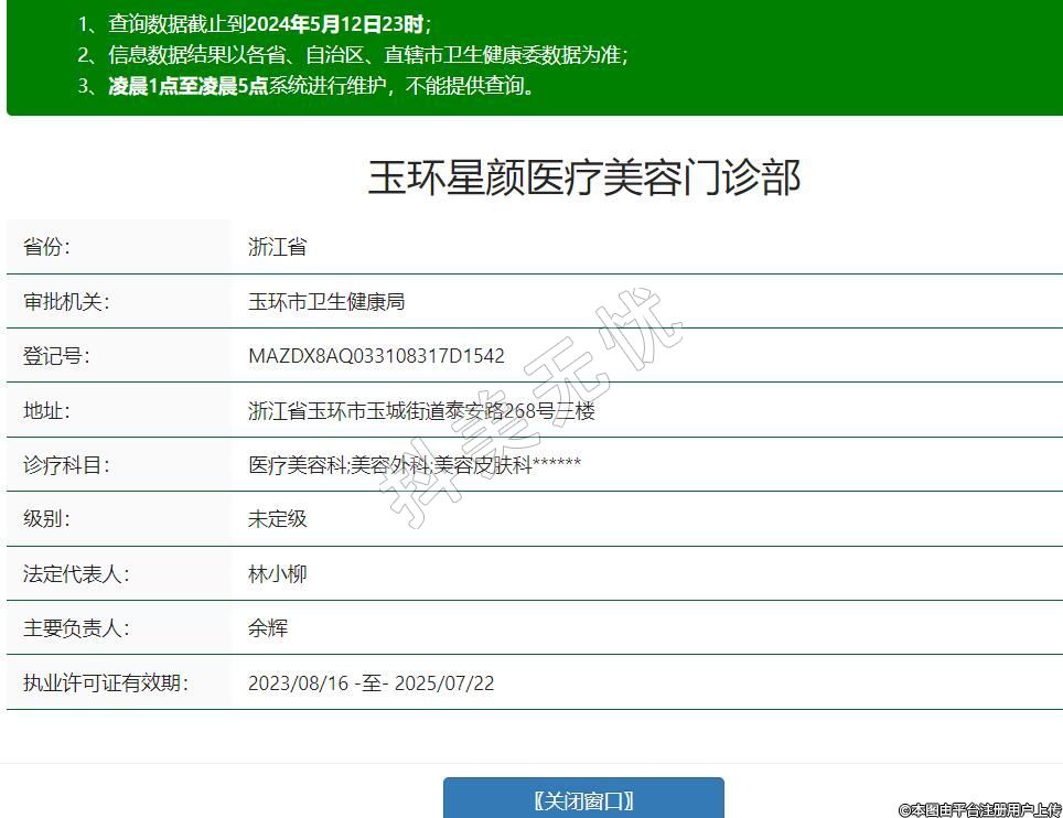 玉環(huán)星顏醫(yī)療美容門診部,診療科目:醫(yī)療美容科;美容外科;美容皮膚科******