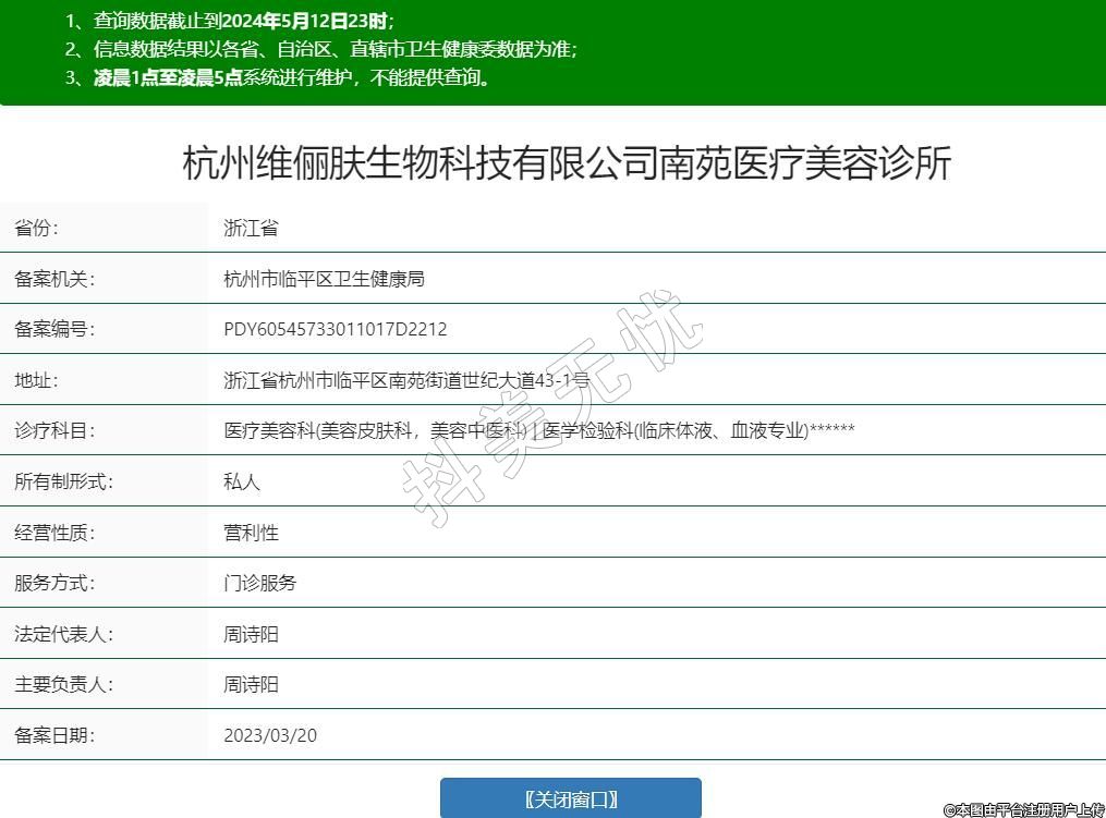 杭州維儷膚生物科技有限公司南苑醫(yī)療美容診所