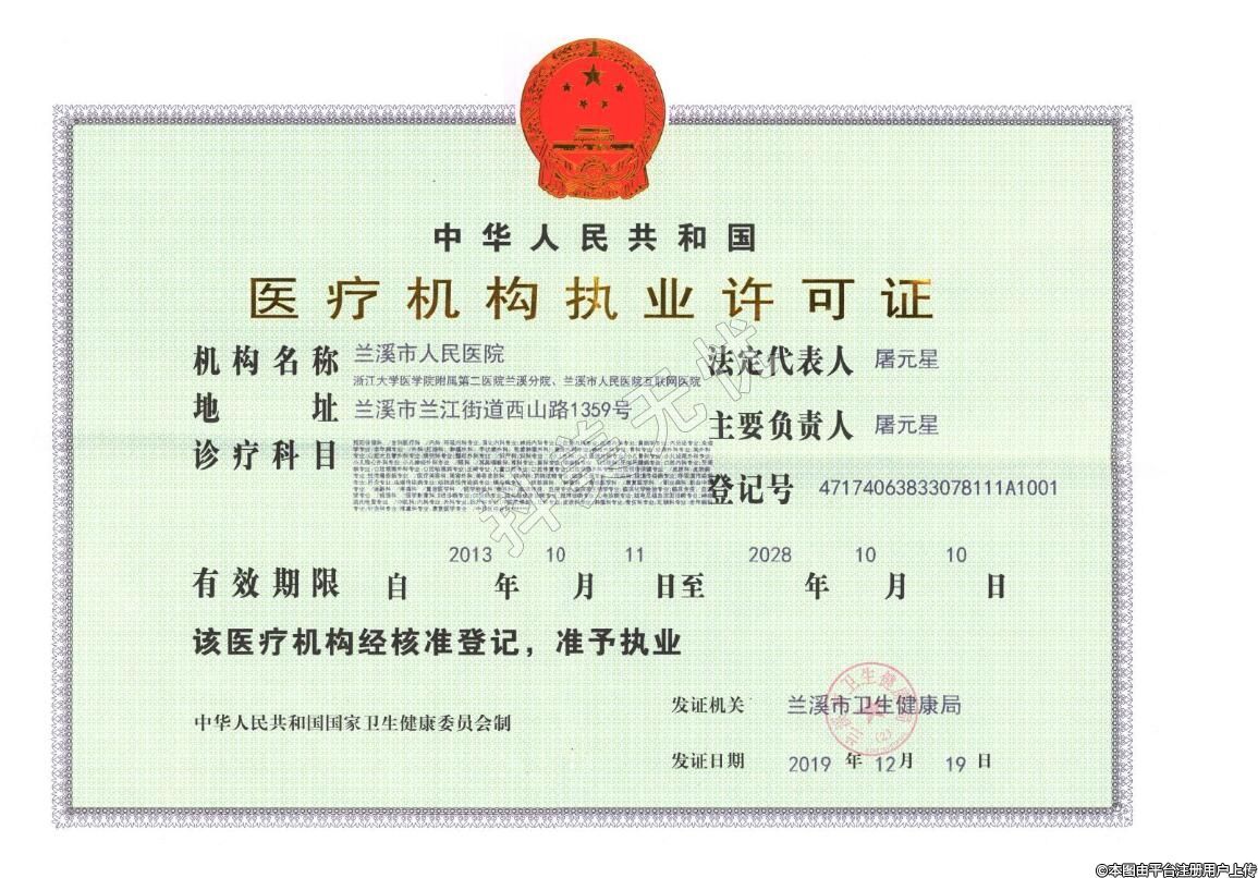 發(fā)證機(jī)關(guān):蘭溪市衛(wèi)生局