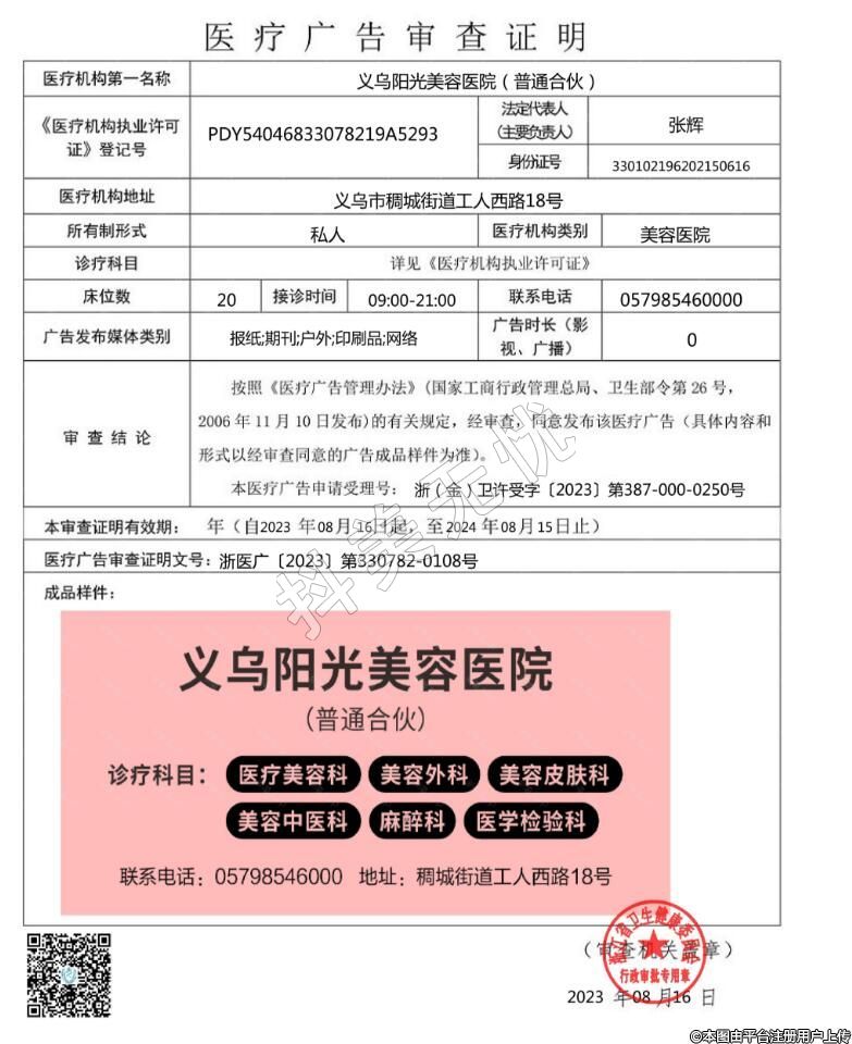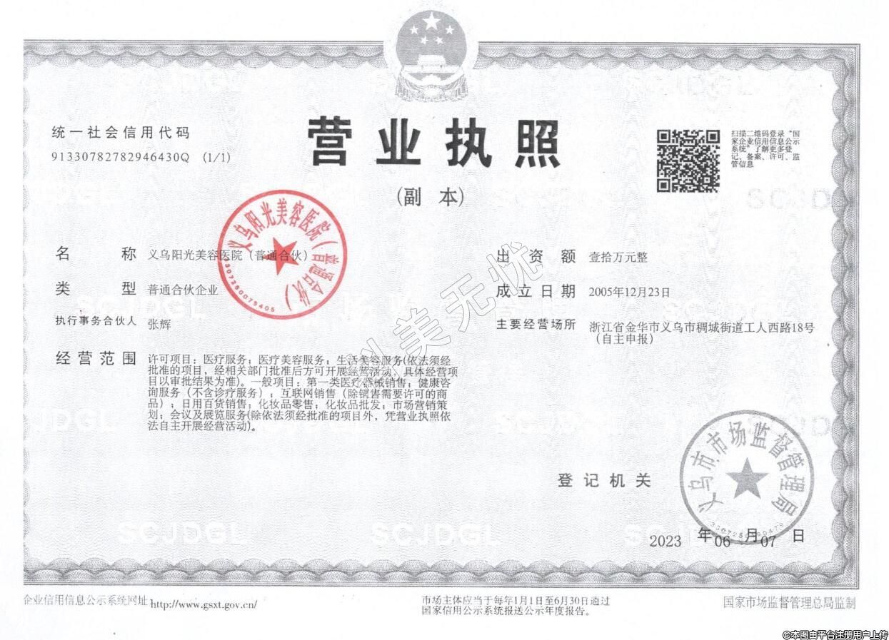 醫(yī)療機(jī)構(gòu)名稱:義烏陽(yáng)光美容醫(yī)院(普通合伙)