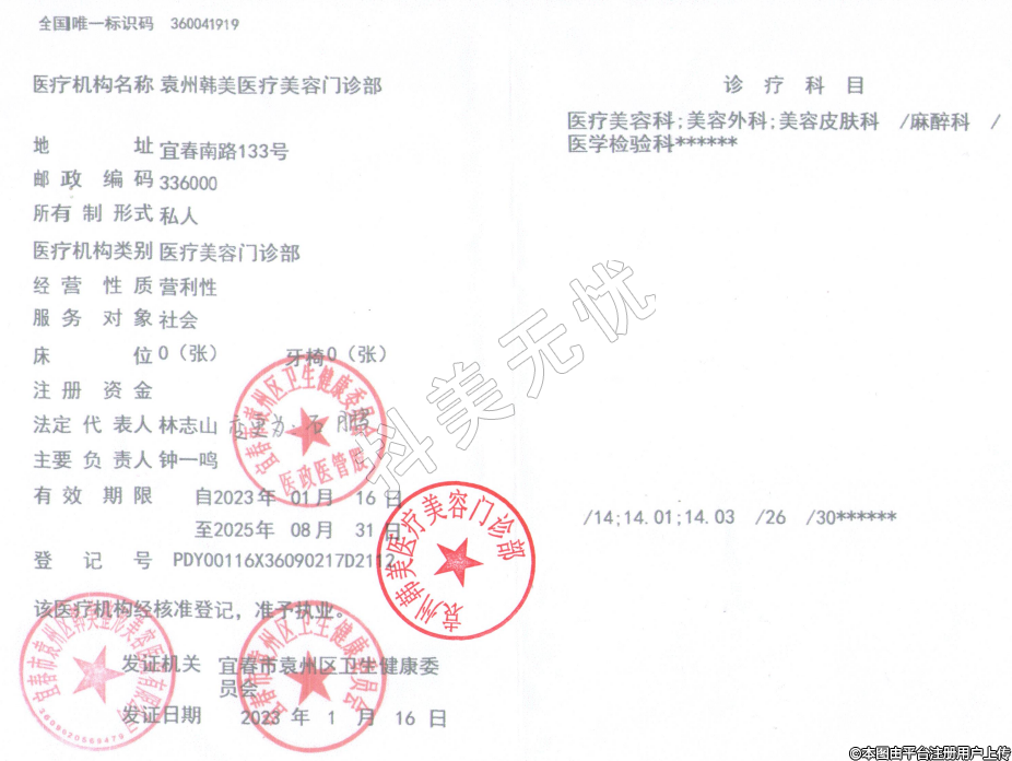 醫(yī)療機構(gòu)名稱:袁州韓美醫(yī)療美容門診部