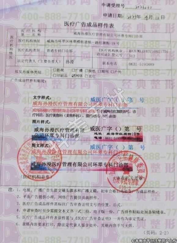 機構(gòu)名稱:威海孫漫醫(yī)療管理有限公司環(huán)翠專科門診部