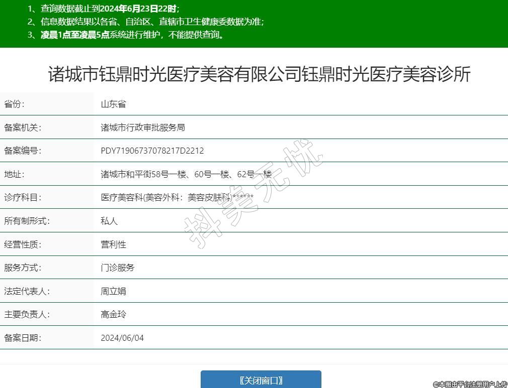 諸城市鈺鼎時(shí)光醫(yī)療美容有限公司鈺鼎時(shí)光醫(yī)療美容診所