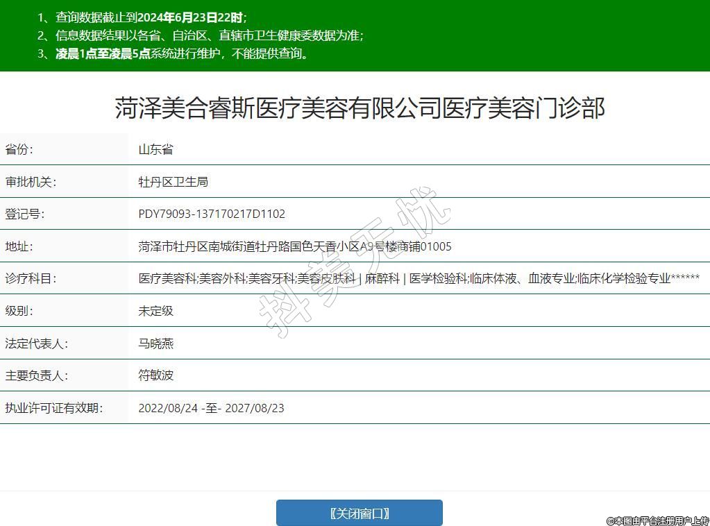 菏澤美合睿斯醫(yī)療美容有限公司醫(yī)療美容門診部