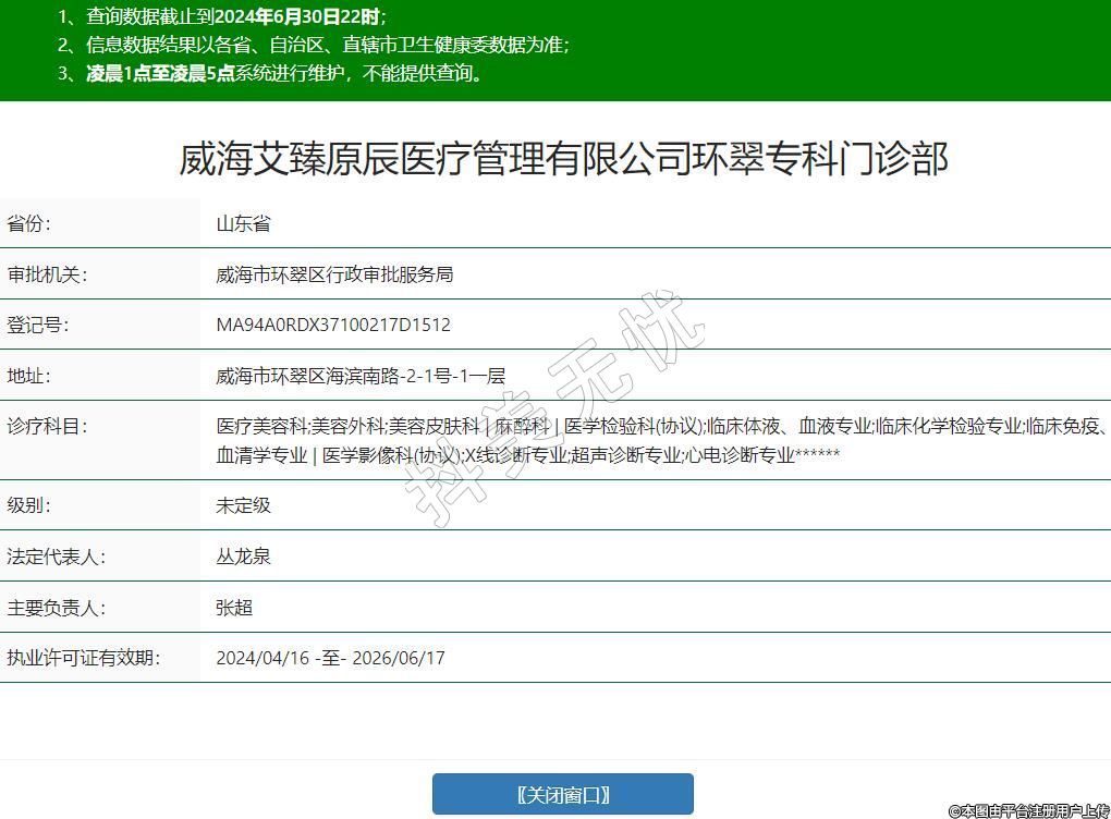 威海艾臻原辰醫(yī)療管理有限公司環(huán)翠專科門診部