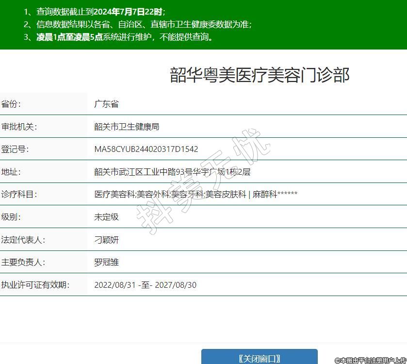 韶華粵美醫(yī)療美容門診部,診療科目:醫(yī)療美容科;美容外科;美容牙科;美容皮膚科 | 麻醉科******