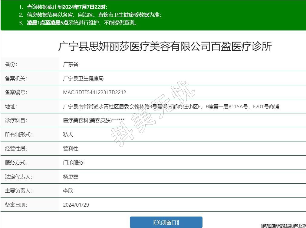 廣寧縣思妍麗莎醫(yī)療美容有限公司百盈醫(yī)療診所