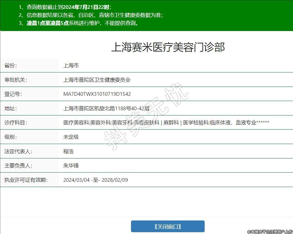 上海賽米醫(yī)療美容門診部,診療科目:醫(yī)療美容科;美容外科;美容牙科;美容皮膚科 | 麻醉科 | 醫(yī)學(xué)檢驗(yàn)科;臨床體液、血液專業(yè)******