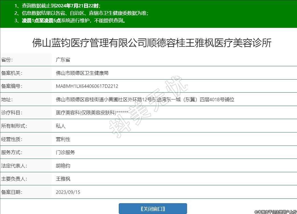 佛山藍鈞醫(yī)療管理有限公司順德容桂王雅楓醫(yī)療美容診所