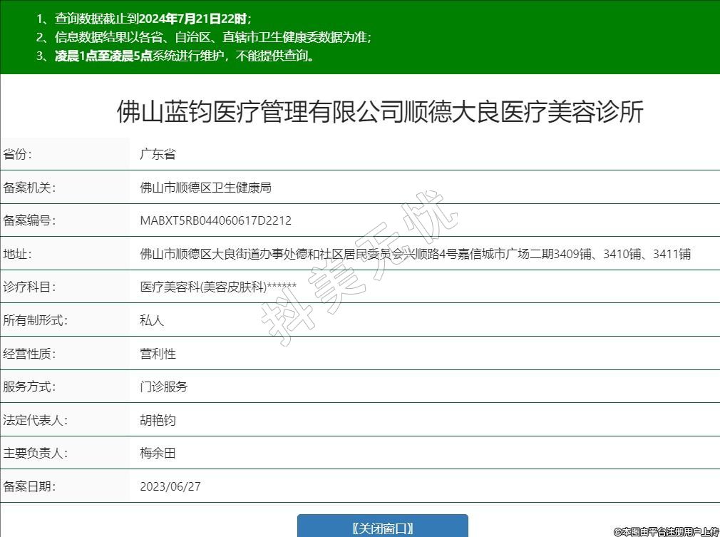 佛山藍(lán)鈞醫(yī)療管理有限公司順德大良醫(yī)療美容診所