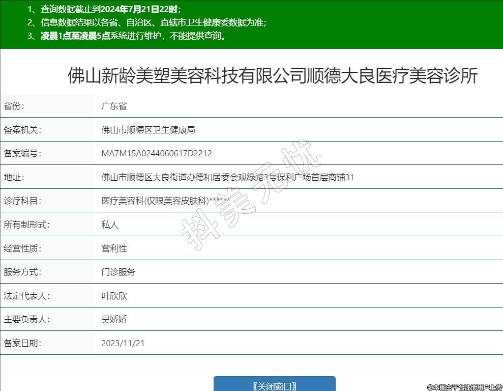 佛山新齡美塑美容科技有限公司順德大良醫(yī)療美容診所,診療科目:醫(yī)療美容科(僅限美容皮膚科)******