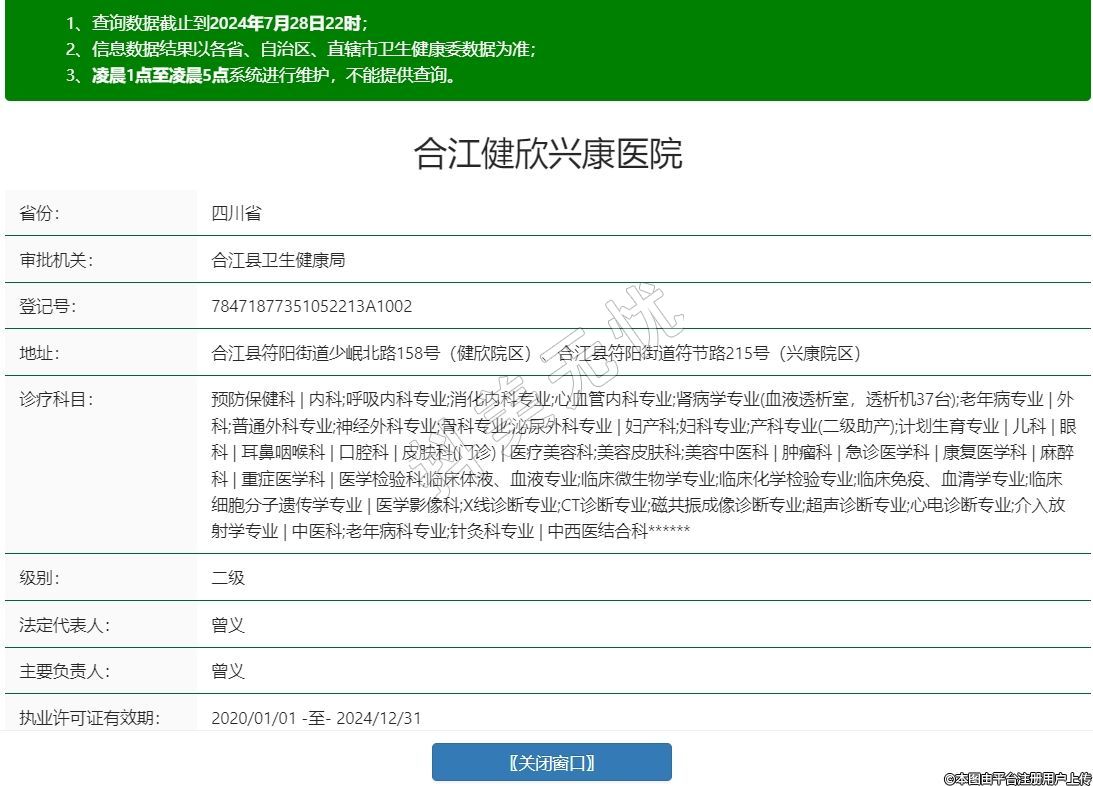 合江縣符陽(yáng)街道少岷北路158號(hào)(健欣院區(qū))、合江縣符陽(yáng)街道符節(jié)路215號(hào)(興康院區(qū))