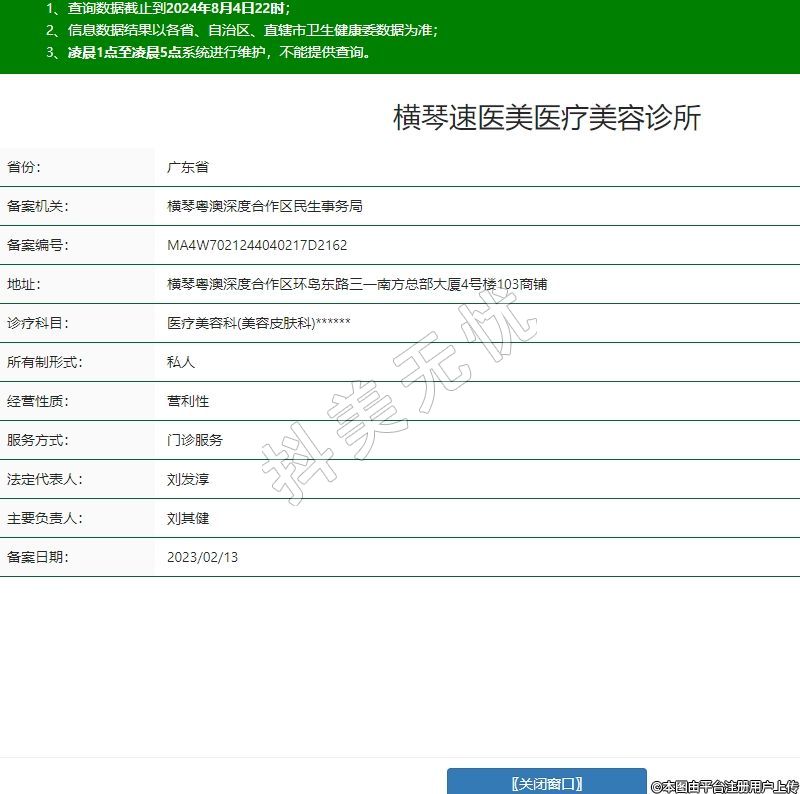 橫琴速醫(yī)美醫(yī)療美容診所,診療科目:醫(yī)療美容科(美容皮膚科)******