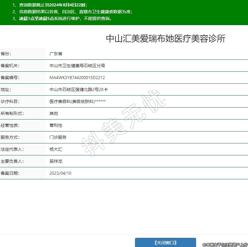 中山匯美愛瑞布她醫(yī)療美容,診療科目:醫(yī)療美容科(美容皮膚科)******
