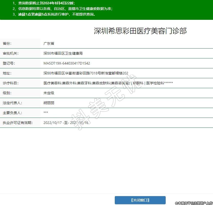 深圳希思彩田醫(yī)療美容門診部,診療科目:醫(yī)療美容科;美容外科;美容牙科;美容皮膚科(美容咨詢室) | 麻醉科 | 醫(yī)學(xué)檢驗科******