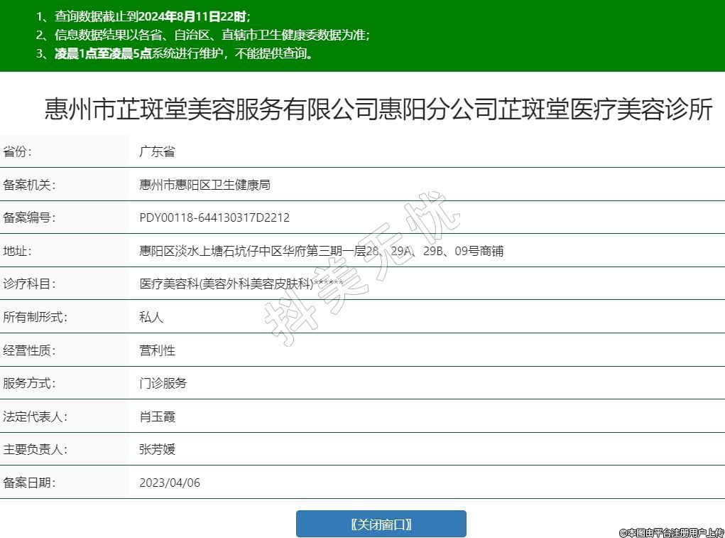 惠州市芷斑堂美容服務(wù)有限公司惠陽分公司芷斑堂醫(yī)療美容診所