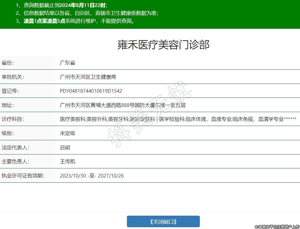 廣州雍禾醫(yī)療美容,診療科目:醫(yī)療美容科;美容外科;美容牙科;美容皮膚科 | 醫(yī)學(xué)檢驗科;臨床體液、血液專業(yè);臨床免疫、血清學(xué)專業(yè)******