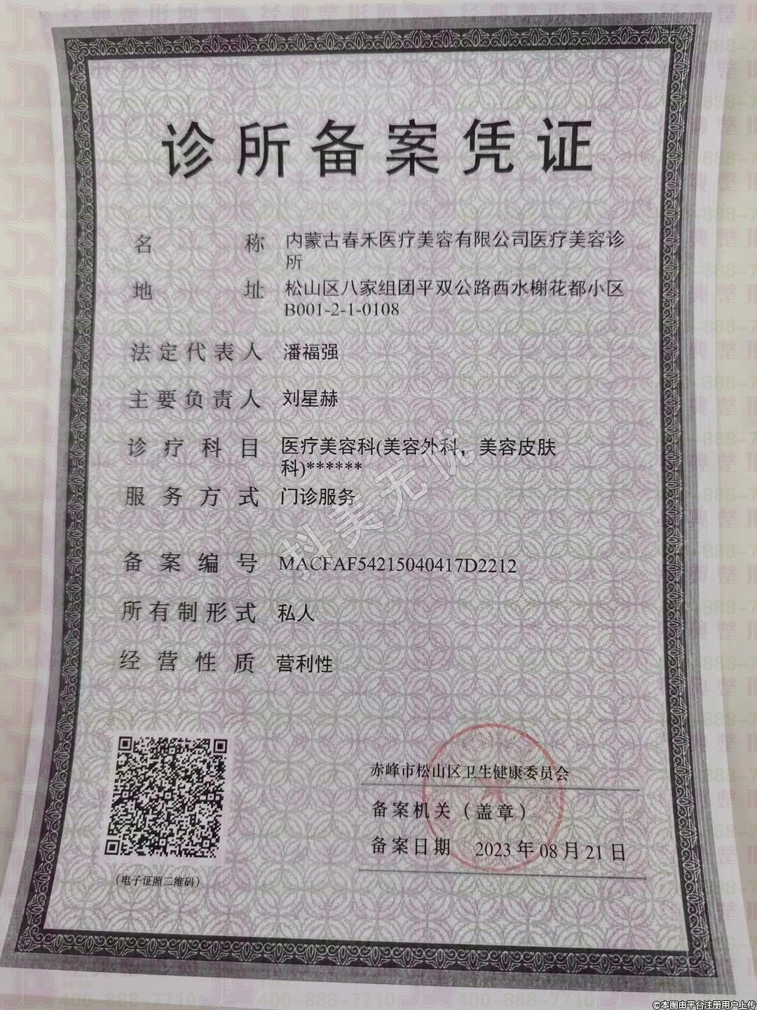名稱(chēng):內(nèi)蒙古春禾醫(yī)療美容有限公司醫(yī)療美容診稱(chēng)所