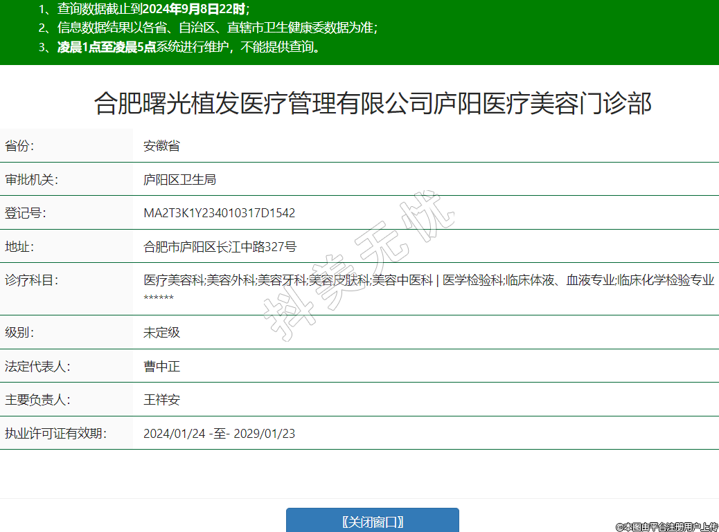 合肥曙光植發(fā)醫(yī)療管理有限公司廬陽(yáng)醫(yī)療美容門(mén)診部