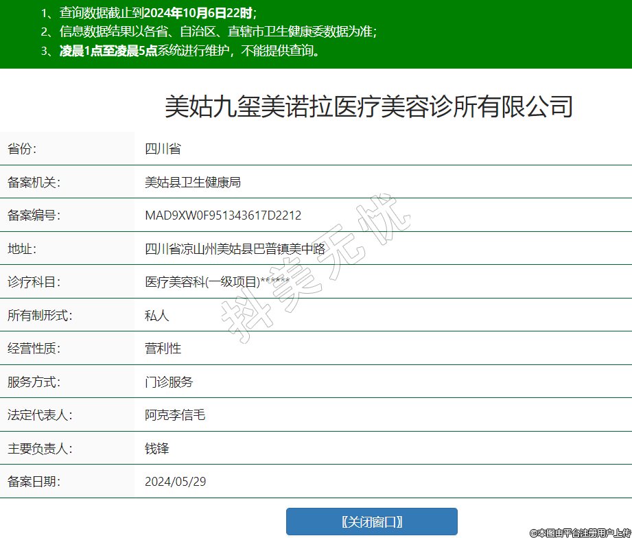美姑九璽美諾拉醫(yī)療美容診所有限公司,診療科目:醫(yī)療美容科(一級項目)******