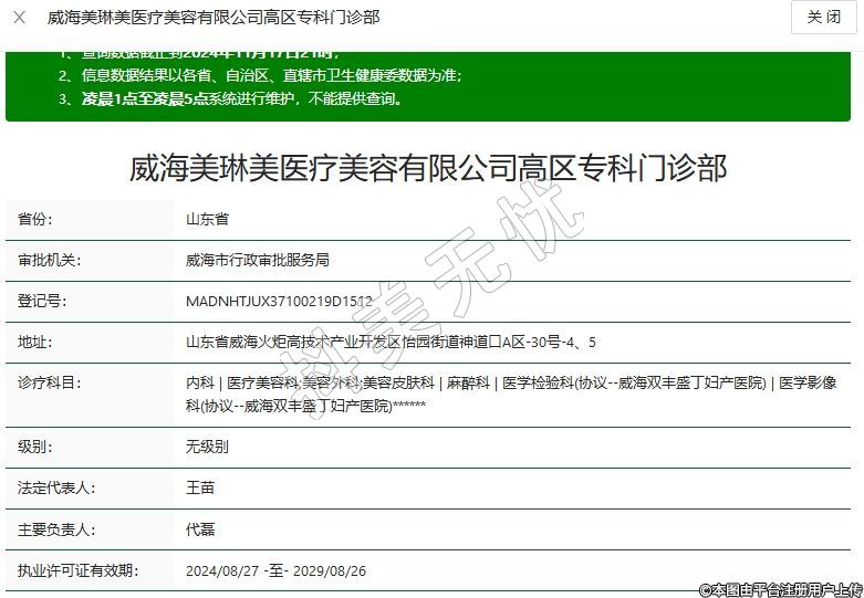 威海美琳美醫(yī)療美容有限公司高區(qū)專(zhuān)科門(mén)診部