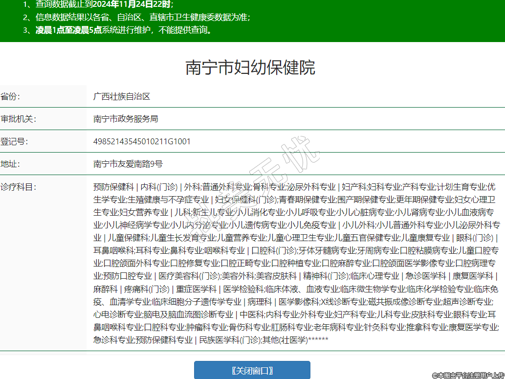預(yù)防保健科 | 內(nèi)科(門診) | 外科;普通外科專業(yè);骨科專業(yè);泌尿外科專業(yè) | 婦產(chǎn)科;婦科專業(yè);產(chǎn)科專業(yè);計(jì)劃生育專業(yè);優(yōu)生學(xué)專業(yè);生殖健康與不孕癥專業(yè) | 婦女保健科(門診);青春期保健專業(yè);圍產(chǎn)期保健專業(yè);更年期保健專業(yè);婦女心理衛(wèi)生專業(yè);婦女營養(yǎng)專業(yè) | 兒科;新生兒專業(yè);小兒消化專業(yè);小兒呼吸專業(yè);小兒心臟病專業(yè);小兒腎病專業(yè);小兒血液病專業(yè);小兒神經(jīng)病學(xué)專業(yè);小兒內(nèi)分泌專業(yè);小兒遺傳病專業(yè);小兒免疫專業(yè) | 小兒外科;小兒普通外科專業(yè);小兒泌尿外科專業(yè) | 兒童保健科;兒童生長發(fā)育專業(yè);兒童營養(yǎng)專業(yè);兒童心理衛(wèi)生專業(yè);兒童五官保健專業(yè);兒童康復(fù)專業(yè) | 眼科(門診) | 耳鼻咽喉科;耳科專業(yè);鼻科專業(yè);咽喉科專業(yè) | 口腔科(門診);牙體牙髓病專業(yè);牙周病專業(yè);口腔粘膜病專業(yè);兒童口腔專業(yè);口腔頜面外科專業(yè);口腔修復(fù)專業(yè);口腔正畸專業(yè);口腔種植專業(yè);口腔麻醉專業(yè);口腔頜面醫(yī)學(xué)影像專業(yè);口腔病理專業(yè);預(yù)防口腔專業(yè) | 醫(yī)療美容科(門診);美容外科;美容皮膚科 | 精神科(門診);臨床心理專業(yè) | 急診醫(yī)學(xué)科 | 康復(fù)醫(yī)學(xué)科 | 麻醉科 | 疼痛科(門診) | 重癥醫(yī)學(xué)科 | 醫(yī)學(xué)檢驗(yàn)科;臨床體液、血液專業(yè);臨床微生物學(xué)專業(yè);臨床化學(xué)檢驗(yàn)專業(yè);臨床免疫、血清學(xué)專業(yè);臨床細(xì)胞分子遺傳學(xué)專業(yè) | 病理科 | 醫(yī)學(xué)影像科;X線診斷專業(yè);磁共振成像診斷專業(yè);超聲診斷專業(yè);心電診斷專業(yè);腦電及腦血流圖診斷專業(yè) | 中醫(yī)科;內(nèi)科專業(yè);外科專業(yè);婦產(chǎn)科專業(yè);兒科專業(yè);皮膚科專業(yè);眼科專業(yè);耳鼻咽喉科專業(yè);口腔科專業(yè);腫瘤科專業(yè);骨傷科專業(yè);肛腸科專業(yè);老年病科專業(yè);針灸科專業(yè);推拿科專業(yè);康復(fù)醫(yī)學(xué)專業(yè);急診科專業(yè);預(yù)防保健科專業(yè) | 民族醫(yī)學(xué)科(門診);其他(壯醫(yī)學(xué))******