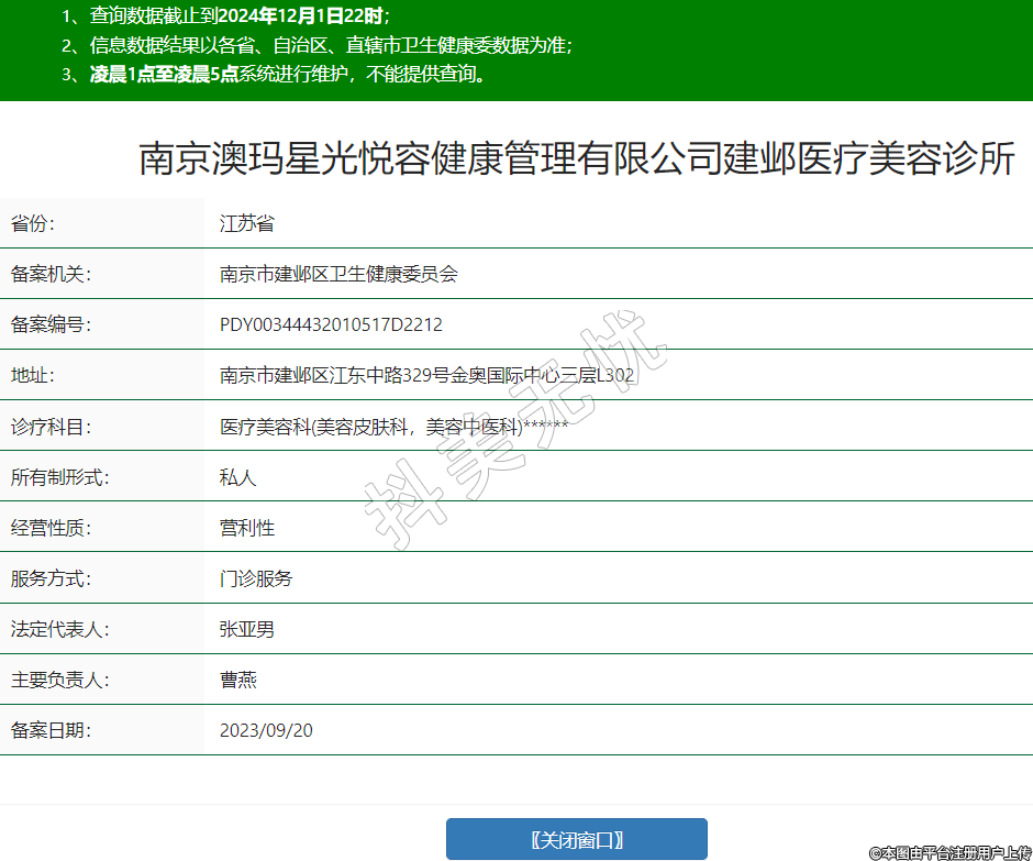 南京澳瑪星光悅?cè)萁】倒芾碛邢薰窘ㄠ掅t(yī)療美容診所,診療科目:醫(yī)療美容科(美容皮膚科,美容中醫(yī)科)******