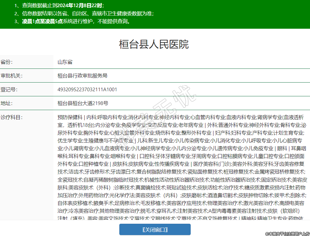 預(yù)防保健科 | 內(nèi)科;呼吸內(nèi)科專業(yè);消化內(nèi)科專業(yè);神經(jīng)內(nèi)科專業(yè);心血管內(nèi)科專業(yè);血液內(nèi)科專業(yè);腎病學(xué)專業(yè)(血液透析室,透析機(jī)18臺);內(nèi)分泌專業(yè);免疫學(xué)專業(yè);變態(tài)反應(yīng)專業(yè);老年病專業(yè) | 外科;普通外科專業(yè);神經(jīng)外科專業(yè);骨科專業(yè);泌尿外科專業(yè);胸外科專業(yè);心臟大血管外科專業(yè);燒傷科專業(yè);整形外科專業(yè) | 婦產(chǎn)科;婦科專業(yè);產(chǎn)科專業(yè);計(jì)劃生育專業(yè);優(yōu)生學(xué)專業(yè);生殖健康與不孕癥專業(yè) | 兒科;新生兒專業(yè);小兒傳染病專業(yè);小兒消化專業(yè);小兒呼吸專業(yè);小兒心臟病專業(yè);小兒腎病專業(yè);小兒血液病專業(yè);小兒神經(jīng)病學(xué)專業(yè);小兒內(nèi)分泌專業(yè);小兒遺傳病專業(yè);小兒免疫專業(yè) | 眼科 | 耳鼻咽喉科;耳科專業(yè);鼻科專業(yè);咽喉科專業(yè) | 口腔科;牙體牙髓病專業(yè);牙周病專業(yè);口腔粘膜病專業(yè);兒童口腔專業(yè);口腔頜面外科專業(yè);口腔種植專業(yè) | 皮膚科;皮膚病專業(yè);性傳播疾病專業(yè) | 醫(yī)療美容科(門診);美容外科;美容牙科;牙齒美容修復(fù)技術(shù);潔齒術(shù);牙齒修形術(shù);牙齒漂白術(shù);復(fù)合樹脂黏結(jié)修復(fù)技術(shù);瓷貼面修復(fù)技術(shù);樁冠修復(fù)技術(shù);金屬烤瓷冠橋修復(fù)技術(shù);全瓷冠技術(shù);自凝丙稀酸樹脂臨時冠技術(shù);機(jī)械性活動性矯治器矯治技術(shù);功能性矯治器矯治技術(shù);固定矯治技術(shù);美容皮膚科;美容皮膚術(shù)(外科);診斷技術(shù);真菌鏡檢技術(shù);斑貼試驗(yàn)技術(shù);皮膚活檢術(shù);治療技術(shù);糖皮質(zhì)激素皮損內(nèi)注射;藥物加壓治療;外用藥物治療;光化學(xué)療法;美容皮膚術(shù)(內(nèi)科);皮膚磨削術(shù);酒渣鼻切割術(shù);皮膚腫物切除術(shù);拔甲術(shù);刮除術(shù);自體表皮移植術(shù);腋臭手術(shù);足病修治術(shù);毛發(fā)移植術(shù);美容醫(yī)療應(yīng)用技術(shù);物理美容治療術(shù);激光美容治療術(shù);高頻電美容治療;冷凍美容治療;其他物理美容治療;脫毛術(shù);穿耳孔術(shù);注射美容技術(shù);A型肉毒毒素美容注射技術(shù);皮膚(軟組織)注射(填充)美容;美容文飾技術(shù);文眉技術(shù);文眼線技術(shù);文唇技術(shù);不良文飾修復(fù)技術(shù) | 精神科;精神衛(wèi)生專業(yè);藥物依賴專業(yè);精神康復(fù)專業(yè);臨床心理專業(yè) | 傳染科;腸道傳染病專業(yè);呼吸道傳染病專業(yè);肝炎專業(yè);蟲媒傳染病專業(yè);動物源性傳染病專業(yè) | 腫瘤科 | 急診醫(yī)學(xué)科 | 康復(fù)醫(yī)學(xué)科 | 麻醉科 | 疼痛科 | 重癥醫(yī)學(xué)科 | 醫(yī)學(xué)檢驗(yàn)科;臨床體液、血液專業(yè);臨床微生物學(xué)專業(yè);臨床化學(xué)檢驗(yàn)專業(yè);臨床免疫、血清學(xué)專業(yè);臨床細(xì)胞分子遺傳學(xué)專業(yè) | 病理科 | 醫(yī)學(xué)影像科;X線診斷專業(yè);CT診斷專業(yè);磁共振成像診斷專業(yè);核醫(yī)學(xué)專業(yè);超聲診斷專業(yè);心電診斷專業(yè);腦電及腦血流圖診斷專業(yè);神經(jīng)肌肉電圖專業(yè);介入放射學(xué)專業(yè);放射治療專業(yè) | 中醫(yī)科;內(nèi)科專業(yè);外科專業(yè);婦產(chǎn)科專業(yè);兒科專業(yè);皮膚科專業(yè);眼科專業(yè);耳鼻咽喉科專業(yè);口腔科專業(yè);骨傷科專業(yè);肛腸科專業(yè);老年病科專業(yè);針灸科專業(yè);推拿科專業(yè);康復(fù)醫(yī)學(xué)專業(yè)******