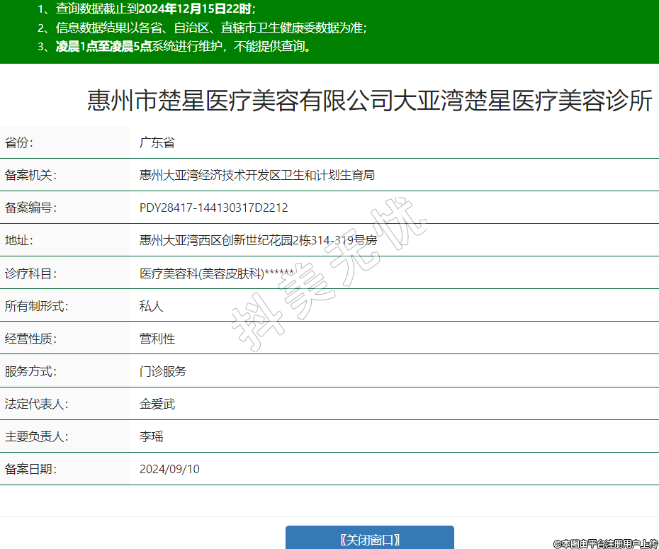 惠州市楚星醫(yī)療美容有限公司大亞灣楚星醫(yī)療美容診所,診療科目:醫(yī)療美容科(美容皮膚科)******