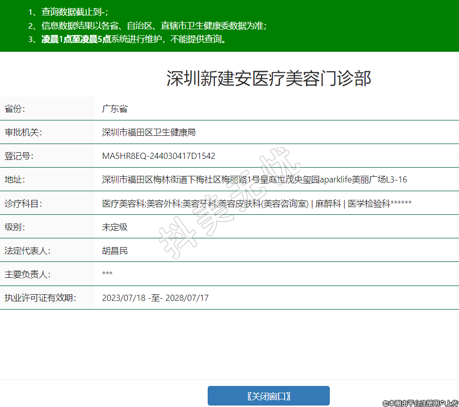 醫(yī)療美容科;美容外科;美容牙科;美容皮膚科(美容咨詢(xún)室) | 麻醉科 | 醫(yī)學(xué)檢驗(yàn)科******