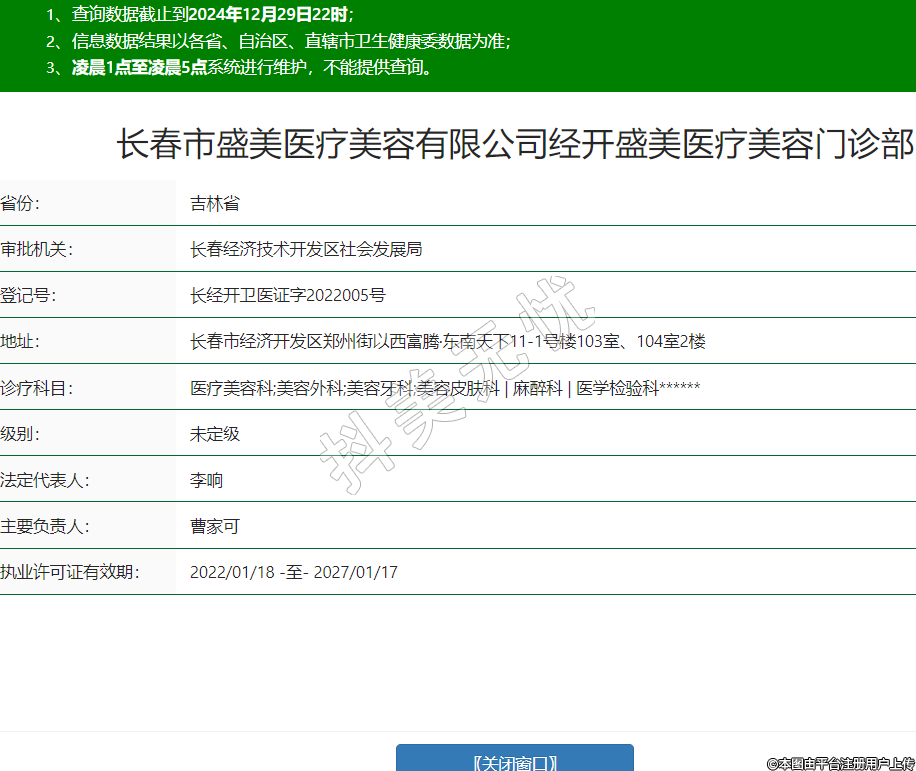 長春市盛美醫(yī)療美容有限公司經(jīng)開盛美醫(yī)療美容門診部