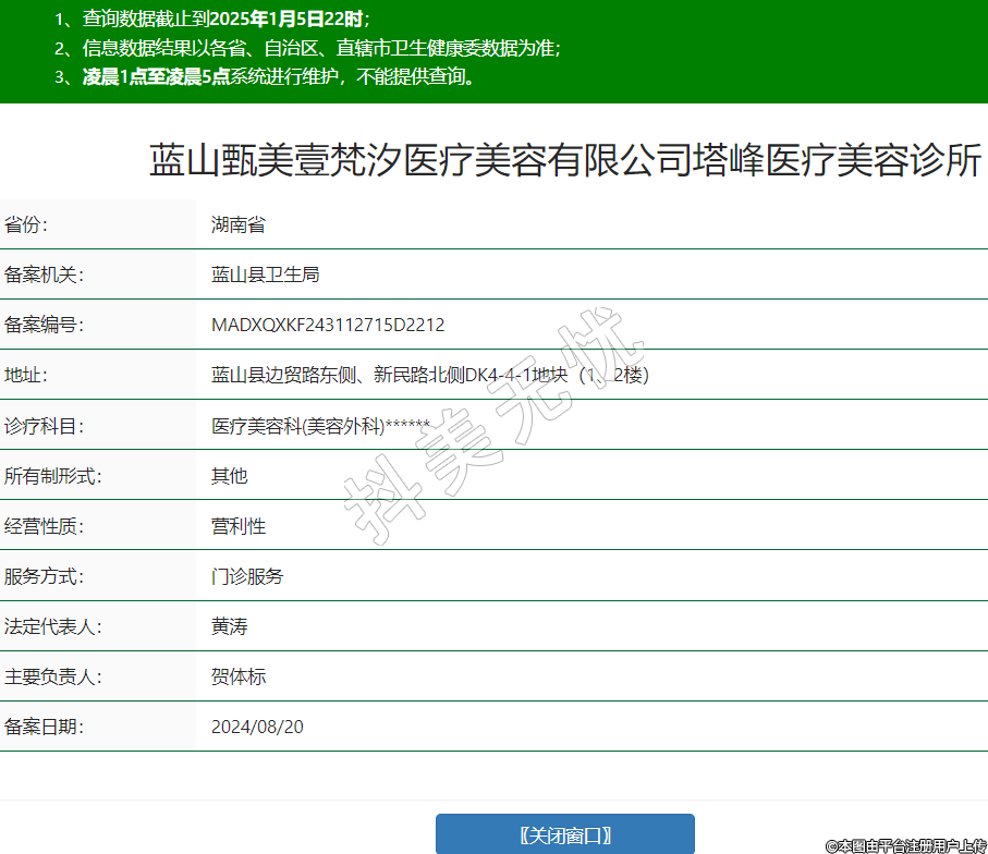 藍(lán)山甄美壹梵汐醫(yī)療美容有限公司塔峰醫(yī)療美容診所