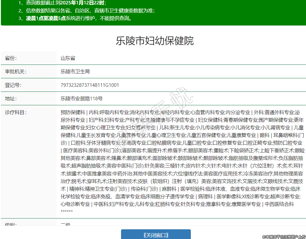 預(yù)防保健科 | 內(nèi)科;呼吸內(nèi)科專業(yè);消化內(nèi)科專業(yè);神經(jīng)內(nèi)科專業(yè);心血管內(nèi)科專業(yè);內(nèi)分泌專業(yè) | 外科;普通外科專業(yè);泌尿外科專業(yè) | 婦產(chǎn)科;婦科專業(yè);產(chǎn)科專業(yè);生殖健康與不孕癥專業(yè) | 婦女保健科;青春期保健專業(yè);圍產(chǎn)期保健專業(yè);更年期保健專業(yè);婦女心理衛(wèi)生專業(yè);婦女營養(yǎng)專業(yè) | 兒科;新生兒專業(yè);小兒傳染病專業(yè);小兒消化專業(yè);小兒腎病專業(yè) | 兒童保健科;兒童生長發(fā)育專業(yè);兒童營養(yǎng)專業(yè);兒童心理衛(wèi)生專業(yè);兒童五官保健專業(yè);兒童康復(fù)專業(yè) | 眼科 | 耳鼻咽喉科(門診) | 口腔科;牙體牙髓病專業(yè);牙周病專業(yè);口腔粘膜病專業(yè);兒童口腔專業(yè);口腔修復(fù)專業(yè);口腔正畸專業(yè);預(yù)防口腔專業(yè) | 醫(yī)療美容科;美容外科(門診);眉部美容術(shù);眉提升術(shù);修眉手術(shù);眼部美容術(shù);重瞼術(shù);下瞼袋矯正術(shù);上瞼下垂矯正術(shù);眼瞼其他美容術(shù);鼻部美容術(shù);隆鼻術(shù);顳部填充術(shù);面部除皺術(shù);額部除皺術(shù);顳部除皺術(shù);脂肪抽吸及腹壁成形術(shù);負(fù)壓脂肪抽吸術(shù);超聲脂肪抽吸術(shù);美容中醫(yī)科(門診);針灸美容;三棱針術(shù);皮內(nèi)針術(shù);火針術(shù);電針術(shù);水針(穴位注射)術(shù);炙術(shù);耳針術(shù);拔罐術(shù);中醫(yī)推拿美容;中藥外治;其他中醫(yī)美容技術(shù);穴位埋線療法;美容醫(yī)療應(yīng)用技術(shù);冷凍美容治療;其他物理美容治療;脫毛術(shù);穿耳孔術(shù);注射美容技術(shù);皮膚(軟組織)注射(填充)美容;美容文飾技術(shù);文眉技術(shù);文眼線技術(shù);文唇技術(shù) | 精神科;精神衛(wèi)生專業(yè)(門診) | 傳染科(門診) | 麻醉科 | 醫(yī)學(xué)檢驗科;臨床體液、血液專業(yè);臨床微生物學(xué)專業(yè);臨床化學(xué)檢驗專業(yè);臨床免疫、血清學(xué)專業(yè);臨床細(xì)胞分子遺傳學(xué)專業(yè) | 病理科 | 醫(yī)學(xué)影像科;X線診斷專業(yè);超聲診斷專業(yè);心電診斷專業(yè) | 中醫(yī)科;婦產(chǎn)科專業(yè);兒科專業(yè);肛腸科專業(yè);針灸科專業(yè);推拿科專業(yè);康復(fù)醫(yī)學(xué)專業(yè) | 中西醫(yī)結(jié)合科******