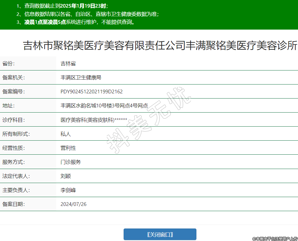 吉林市聚銘美醫(yī)療美容有限責(zé)任公司豐滿聚銘美醫(yī)療美容診所