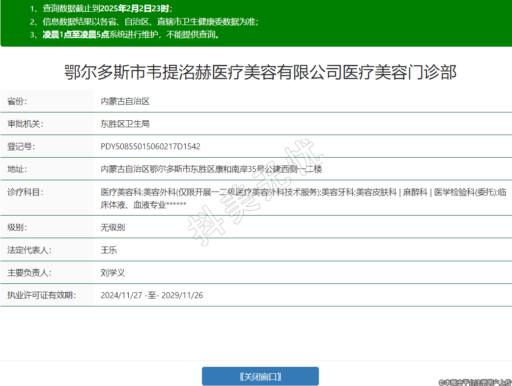 鄂爾多斯市韋提洺赫醫(yī)療美容有限公司醫(yī)療美容門診部