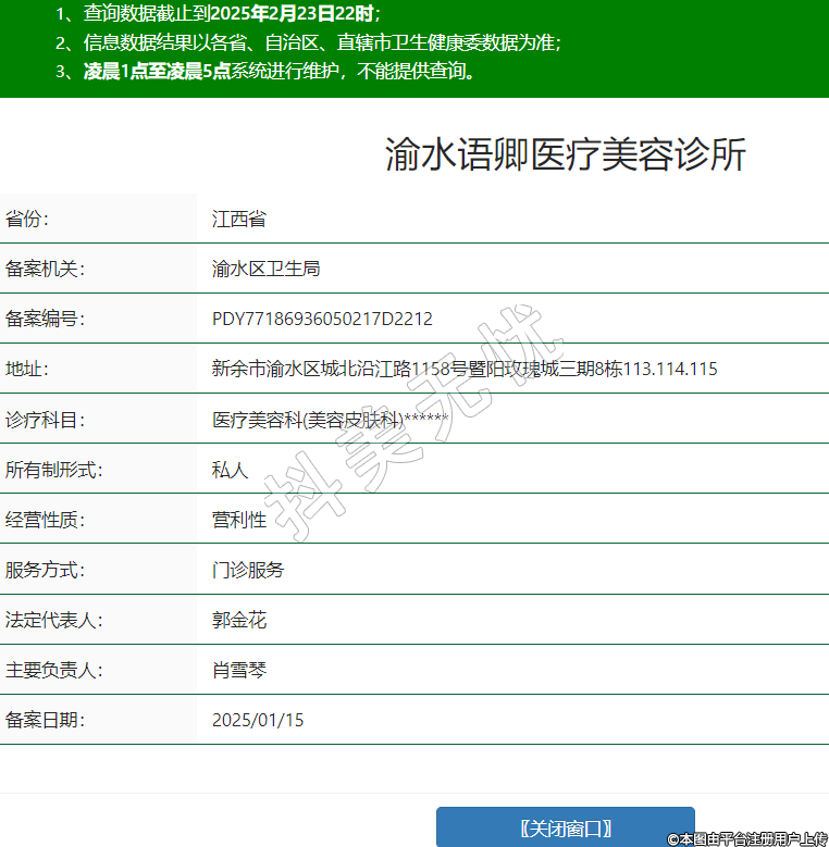 渝水語卿醫(yī)療美容診所,診療科目:醫(yī)療美容科(美容皮膚科)******