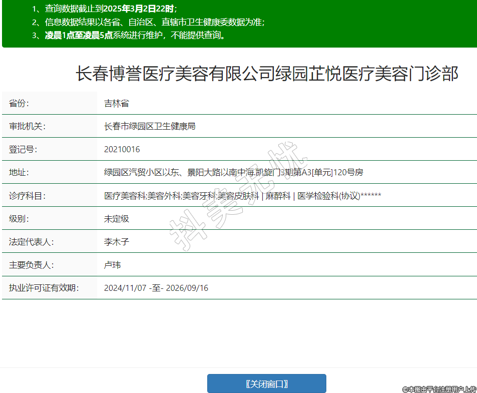 長(zhǎng)春博譽(yù)醫(yī)療美容有限公司綠園芷悅醫(yī)療美容門(mén)診部