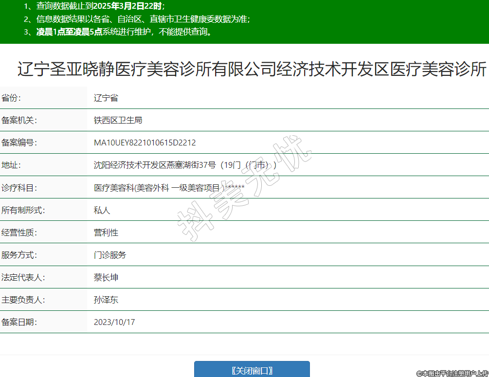 遼寧圣亞曉靜醫(yī)療美容診所有限公司經(jīng)濟技術開發(fā)區(qū)醫(yī)療美容診所
