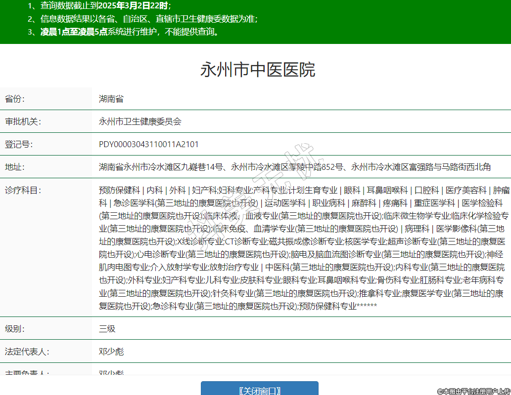 預(yù)防保健科 | 內(nèi)科 | 外科 | 婦產(chǎn)科;婦科專業(yè);產(chǎn)科專業(yè);計(jì)劃生育專業(yè) | 眼科 | 耳鼻咽喉科 | 口腔科 | 醫(yī)療美容科 | 腫瘤科 | 急診醫(yī)學(xué)科(第三地址的康復(fù)醫(yī)院也開設(shè)) | 運(yùn)動(dòng)醫(yī)學(xué)科 | 職業(yè)病科 | 麻醉科 | 疼痛科 | 重癥醫(yī)學(xué)科 | 醫(yī)學(xué)檢驗(yàn)科(第三地址的康復(fù)醫(yī)院也開設(shè));臨床體液、血液專業(yè)(第三地址的康復(fù)醫(yī)院也開設(shè));臨床微生物學(xué)專業(yè);臨床化學(xué)檢驗(yàn)專業(yè)(第三地址的康復(fù)醫(yī)院也開設(shè));臨床免疫、血清學(xué)專業(yè)(第三地址的康復(fù)醫(yī)院也開設(shè)) | 病理科 | 醫(yī)學(xué)影像科(第三地址的康復(fù)醫(yī)院也開設(shè));X線診斷專業(yè);CT診斷專業(yè);磁共振成像診斷專業(yè);核醫(yī)學(xué)專業(yè);超聲診斷專業(yè)(第三地址的康復(fù)醫(yī)院也開設(shè));心電診斷專業(yè)(第三地址的康復(fù)醫(yī)院也開設(shè));腦電及腦血流圖診斷專業(yè)(第三地址的康復(fù)醫(yī)院也開設(shè));神經(jīng)肌肉電圖專業(yè);介入放射學(xué)專業(yè);放射治療專業(yè) | 中醫(yī)科(第三地址的康復(fù)醫(yī)院也開設(shè));內(nèi)科專業(yè)(第三地址的康復(fù)醫(yī)院也開設(shè));外科專業(yè);婦產(chǎn)科專業(yè);兒科專業(yè);皮膚科專業(yè);眼科專業(yè);耳鼻咽喉科專業(yè);骨傷科專業(yè);肛腸科專業(yè);老年病科專業(yè)(第三地址的康復(fù)醫(yī)院也開設(shè));針灸科專業(yè)(第三地址的康復(fù)醫(yī)院也開設(shè));推拿科專業(yè);康復(fù)醫(yī)學(xué)專業(yè)(第三地址的康復(fù)醫(yī)院也開設(shè));急診科專業(yè)(第三地址的康復(fù)醫(yī)院也開設(shè));預(yù)防保健科專業(yè)******