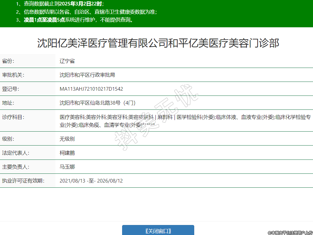 沈陽億美澤醫(yī)療管理有限公司和平億美醫(yī)療美容門診部